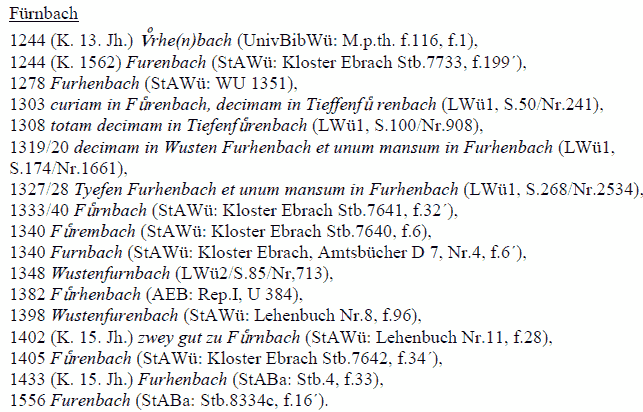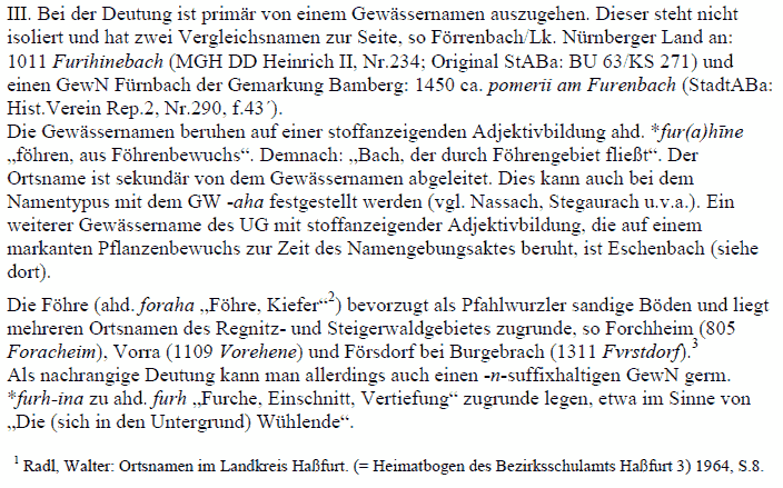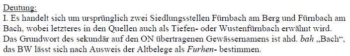 Die folgende Leseprobe zeigt am Beispiel von Fürnbach, den Aufbau, Inhalt und Umfang der einzelnen Namenartikel: